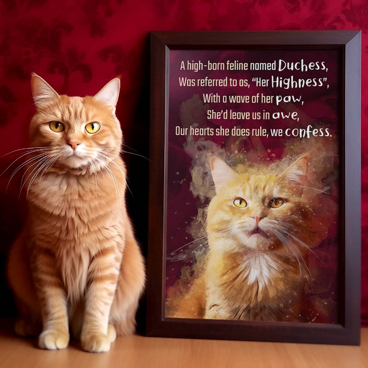 Bespoke limerick featuring custom watercolor-style artwork, composed exclusively for your pet!