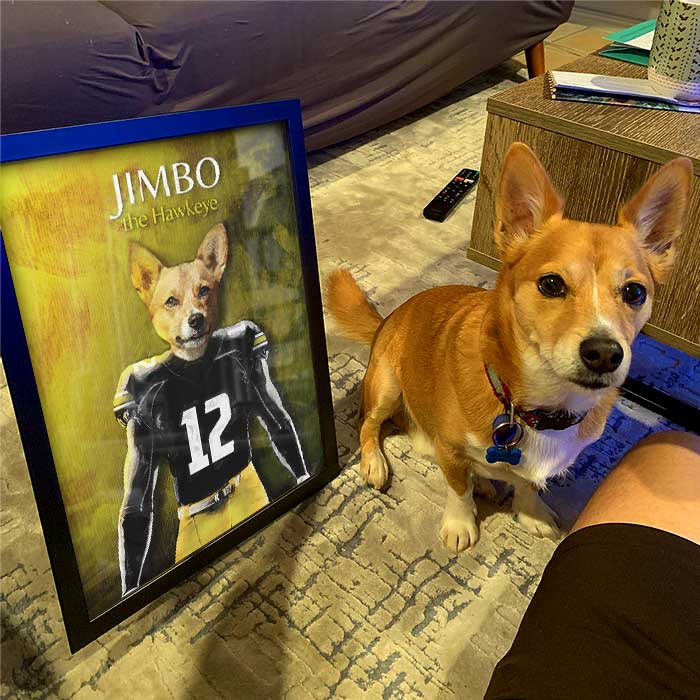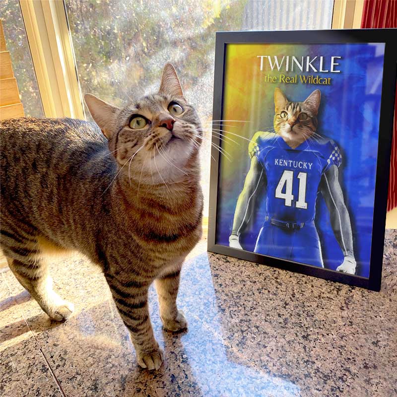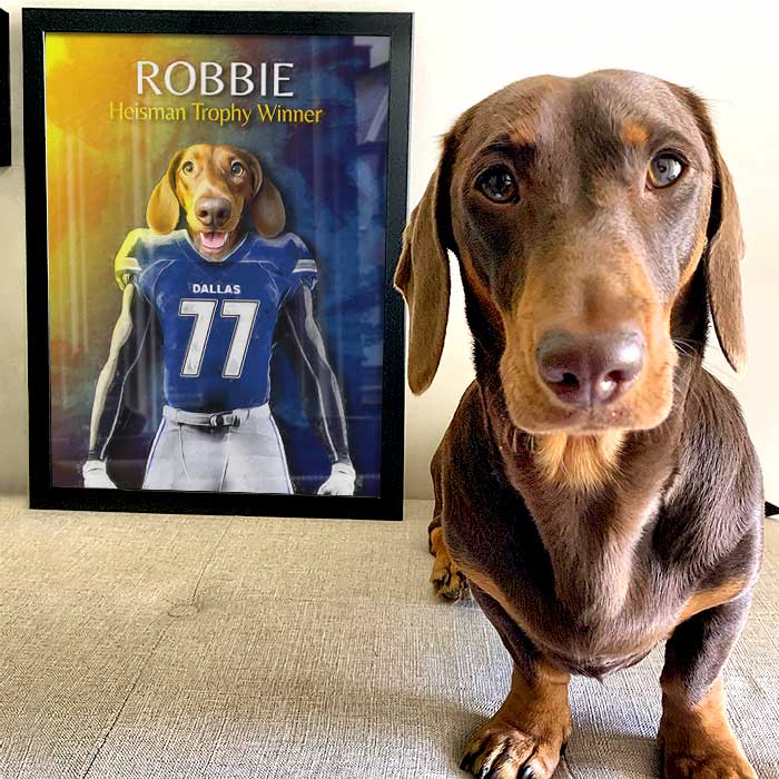 Custom pet portraits featuring your pet, dressed from head to paw, in your favorite team's uniform!