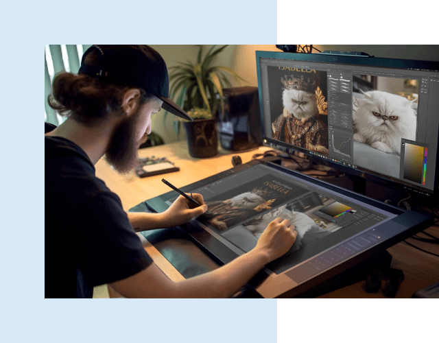 Your pet portrait is designed by our in-house team of professional artists using free-hand blending and proprietary, advanced compositing techniques to achieve a stunning oil-painting style. The final artwork designs go through our quality check before you receive your preview!
